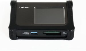 You can get a variety of portable hard drives (rotating disk or SSD), but getting information OUT of your SD and CF Express cards INTO a portable hard drive can be complicated and time consuming. However, there is a GREAT solution, the Clouzen Tainer. It isn’t cheap but it makes backing up VERY easy. It is a dedicated device for backing up SD and CF Express cards. Turn it on, insert the card, press a button, and it automatically makes a backup copy of everything on the card. If you wish, it will verify that the copy matches. And it only backs up the newly added photos, not duplicating those that are already backed up. It takes just a few minutes to complete the process. I won’t travel internationally without this device in my kit!